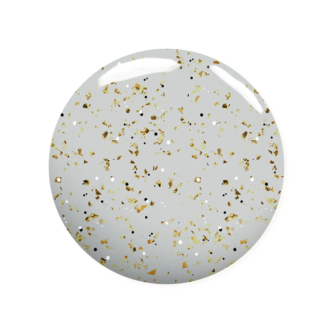 Milky formula with tiny white & black flecks. It also has a hint of gold leaf.